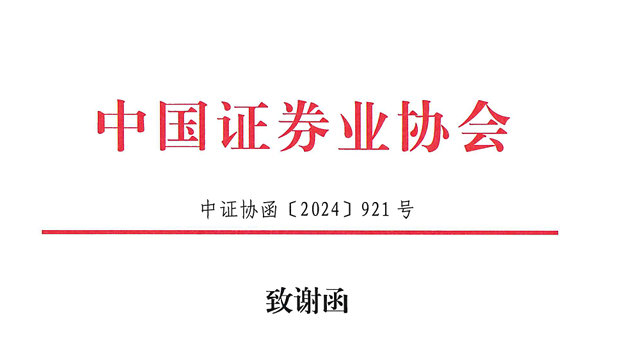 由中國證券業(yè)協(xié)會組織編撰,聯(lián)合資信評估股份有限公司(以下簡稱“聯(lián)合資信”)參編的《中國證券業(yè)發(fā)展報告(2024)》于近期出版發(fā)行。近日,中國證券業(yè)協(xié)會專門向聯(lián)合資信發(fā)送了《致謝函》。